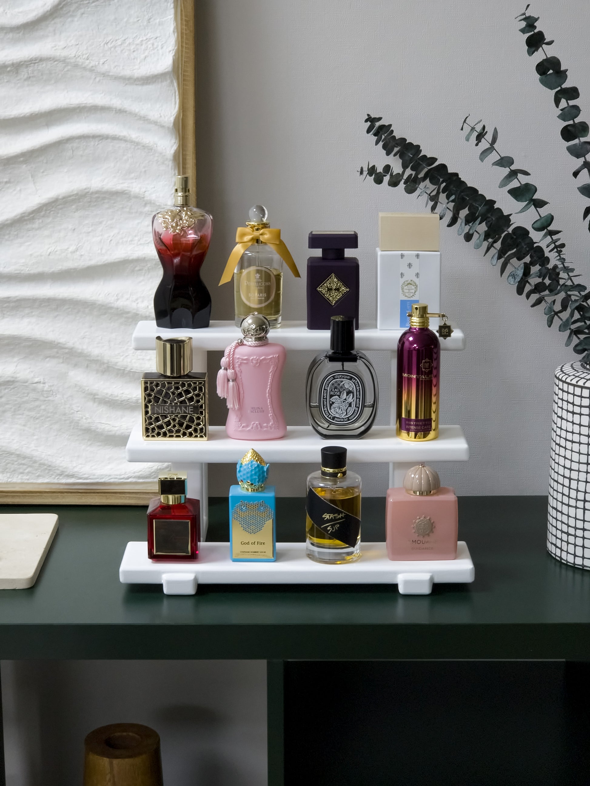 A statement piece for every fragrance lover. The Collector’s Rack by Parfum Library is where craftsmanship meets curation. Handmade with precision, designed to hold up to 12 perfumes and present your collection with the elegance it deserves.